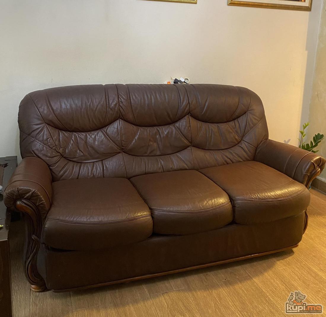 Povoljno prodajem ocuvanu koznu garnituru: trosjed, dvosjed i fotelja.