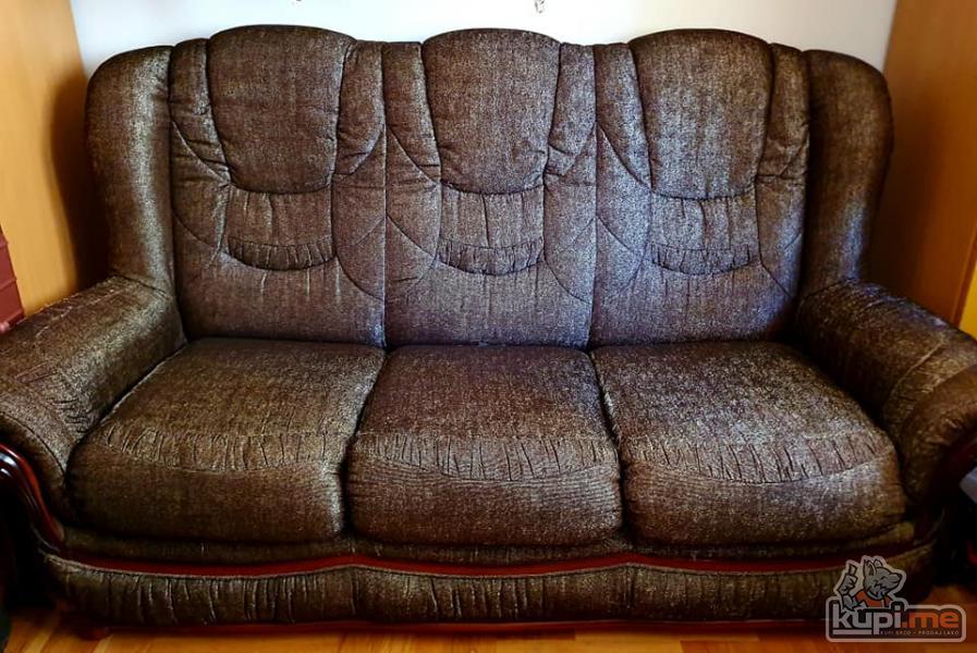 Komplet garnitura (trosed sa mehanizmom za razvlacenje, dvosed i fotelja).Bez oštećenja.Budva067215908