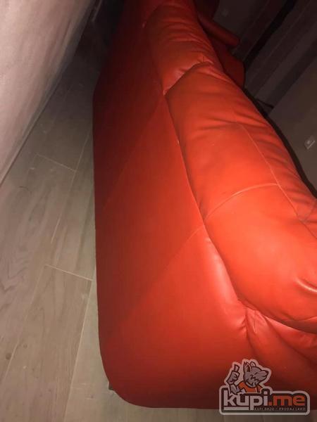 Trosjed dvosjed i fotelja. Crvena boja. Eko koza