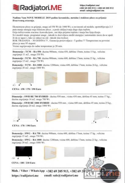 nfracrveni radijatori od keramike, stakla, metalni hibridi, 1000w, 750w, 550w, 500w. Dostava širom Crne Gore. Www.radijatori.me, tel 069-205-912, -913