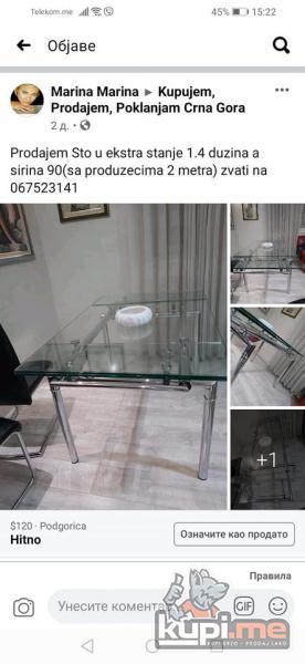 Prodajem Sto u ekstra stanje. 1.4 duzina-sirina 90 ( sa produzecima 2 metra) zvati na 067523141